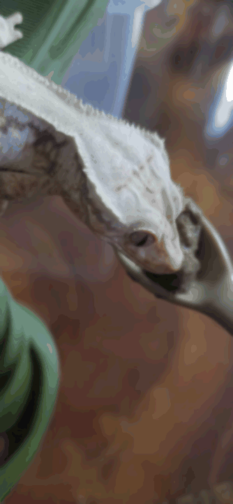 The GIF above is a loop of my female crested gecko, a Lily White, exported with my own tool. Her creamy tones and mottled pattern make her a pretty good stress test for GIF quality — especially for seeing whether the image holds up, or whether it turns into that weird soft clay-like mush GIFs are infamous for. (laugh)